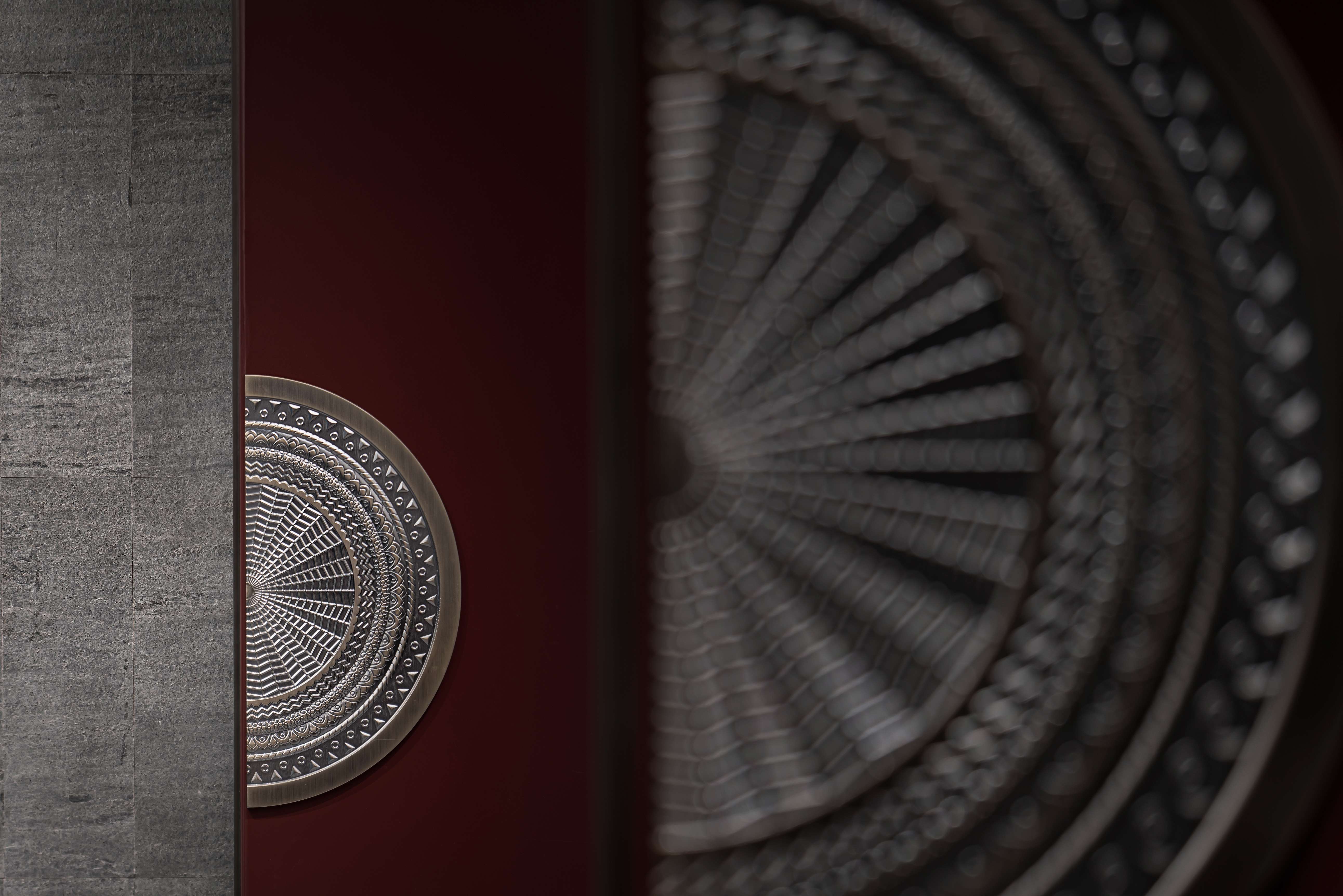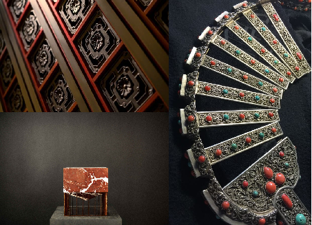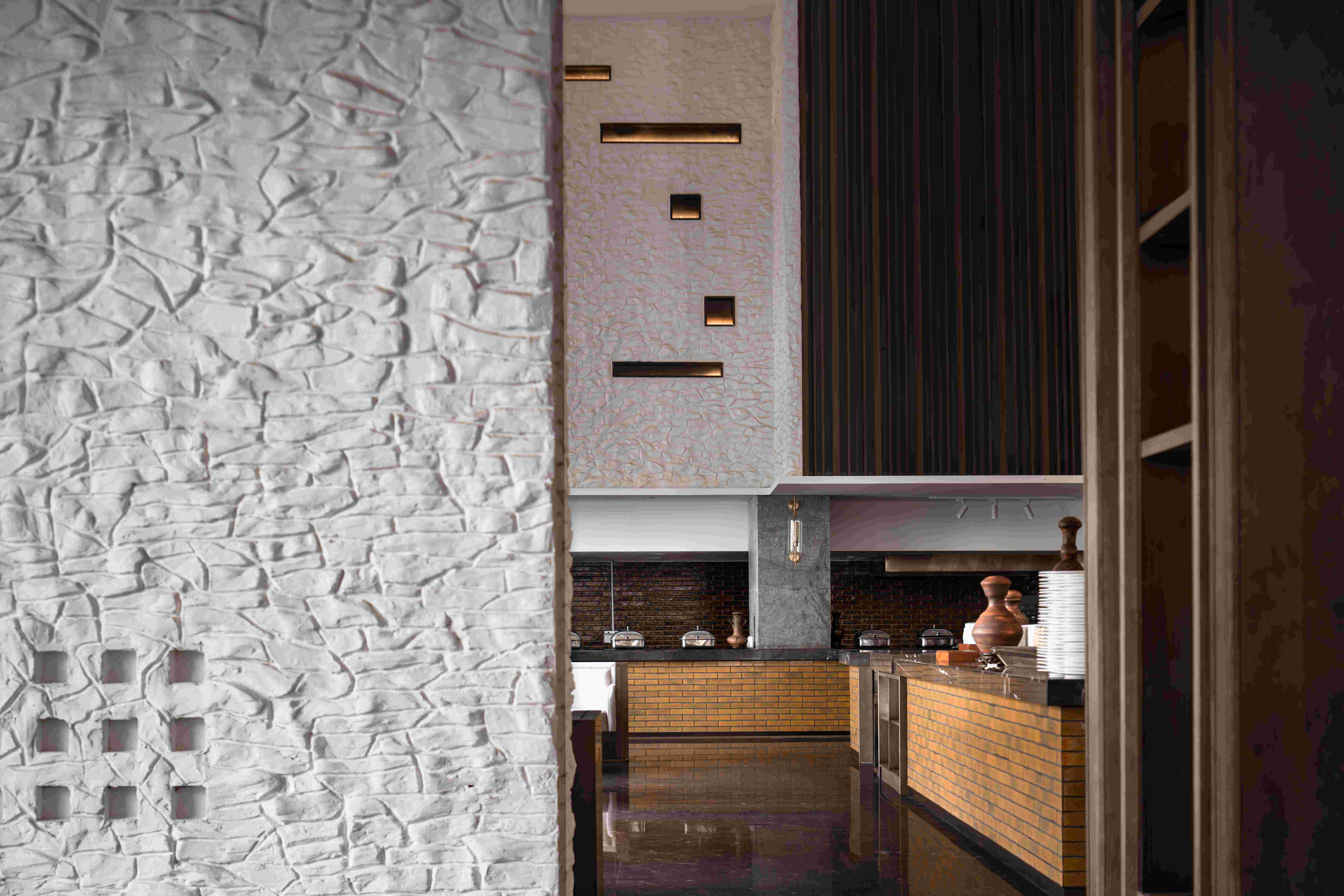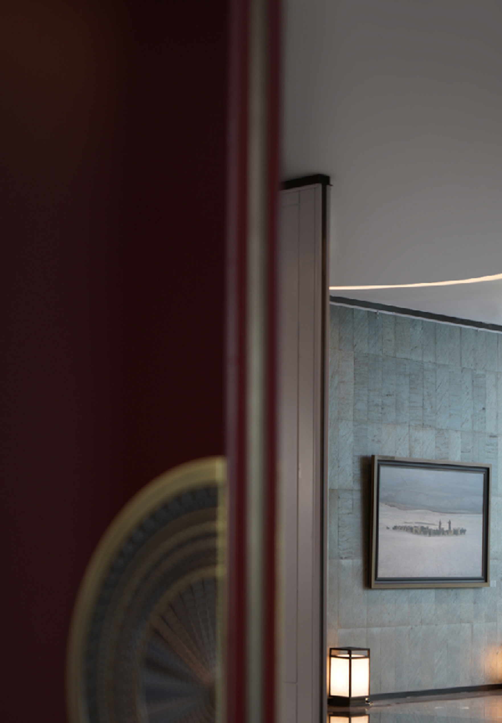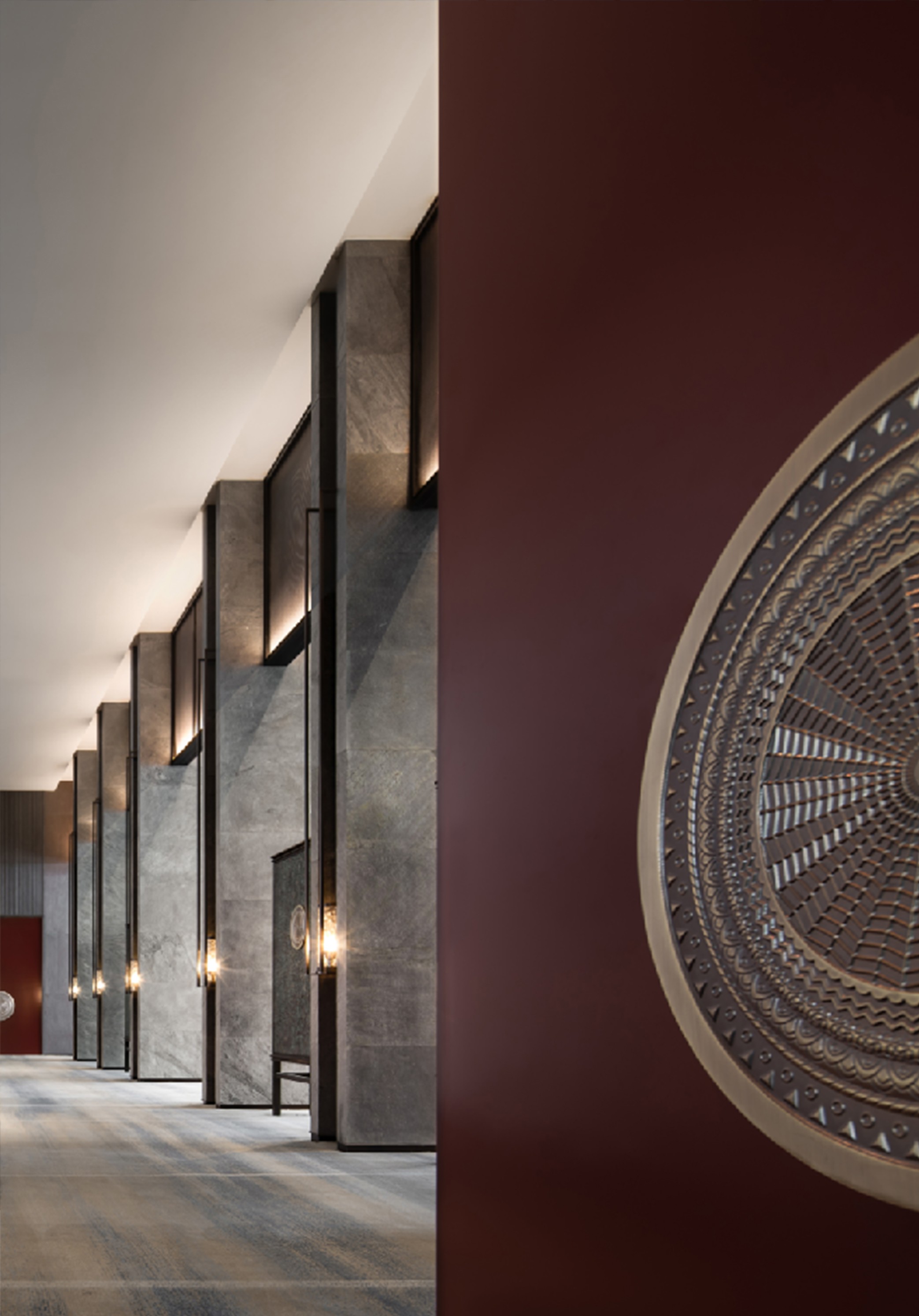 天然質(zhì)感薄石材墻、藏式邊瑪墻融合藝術(shù)畫廊。