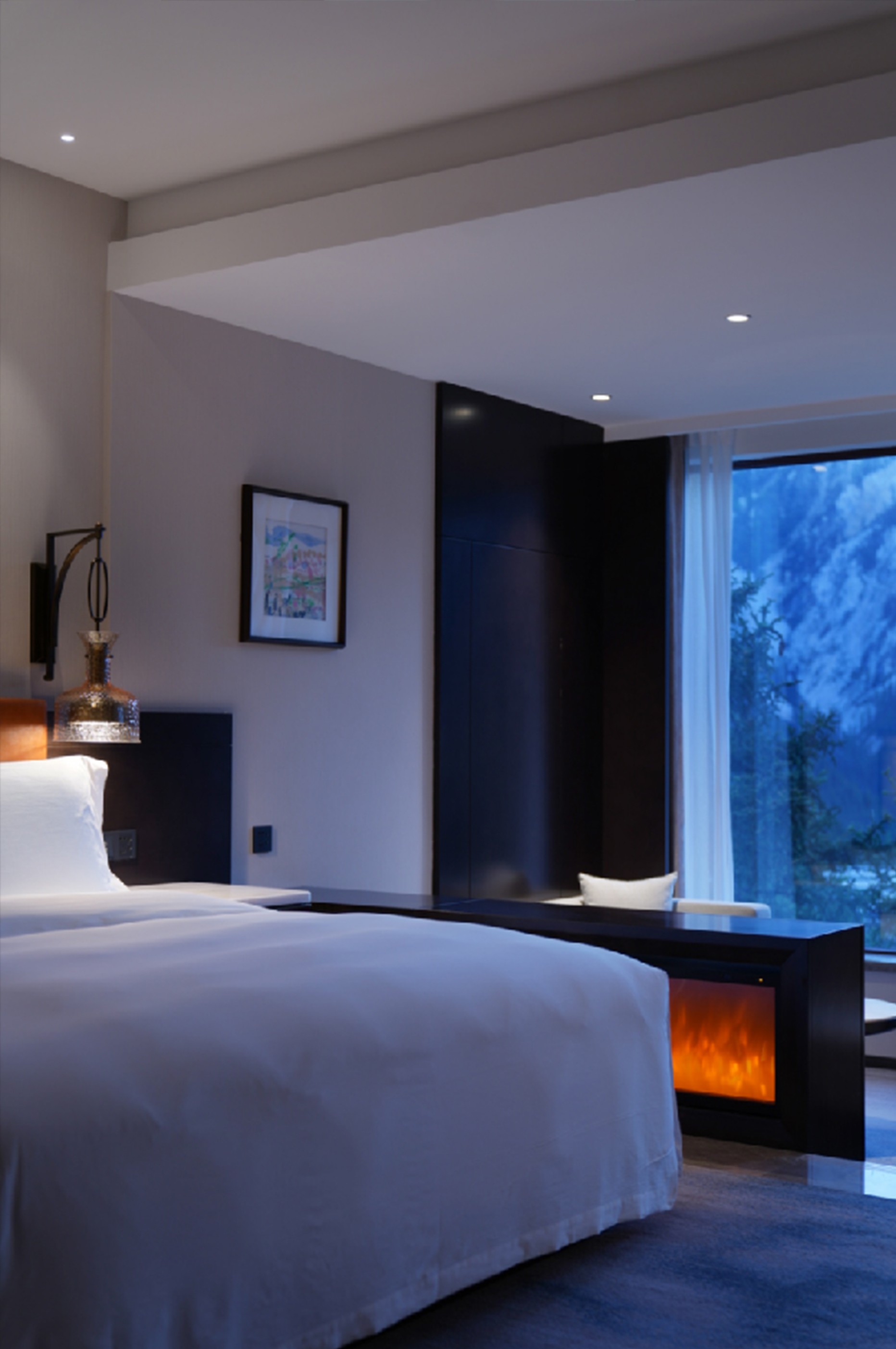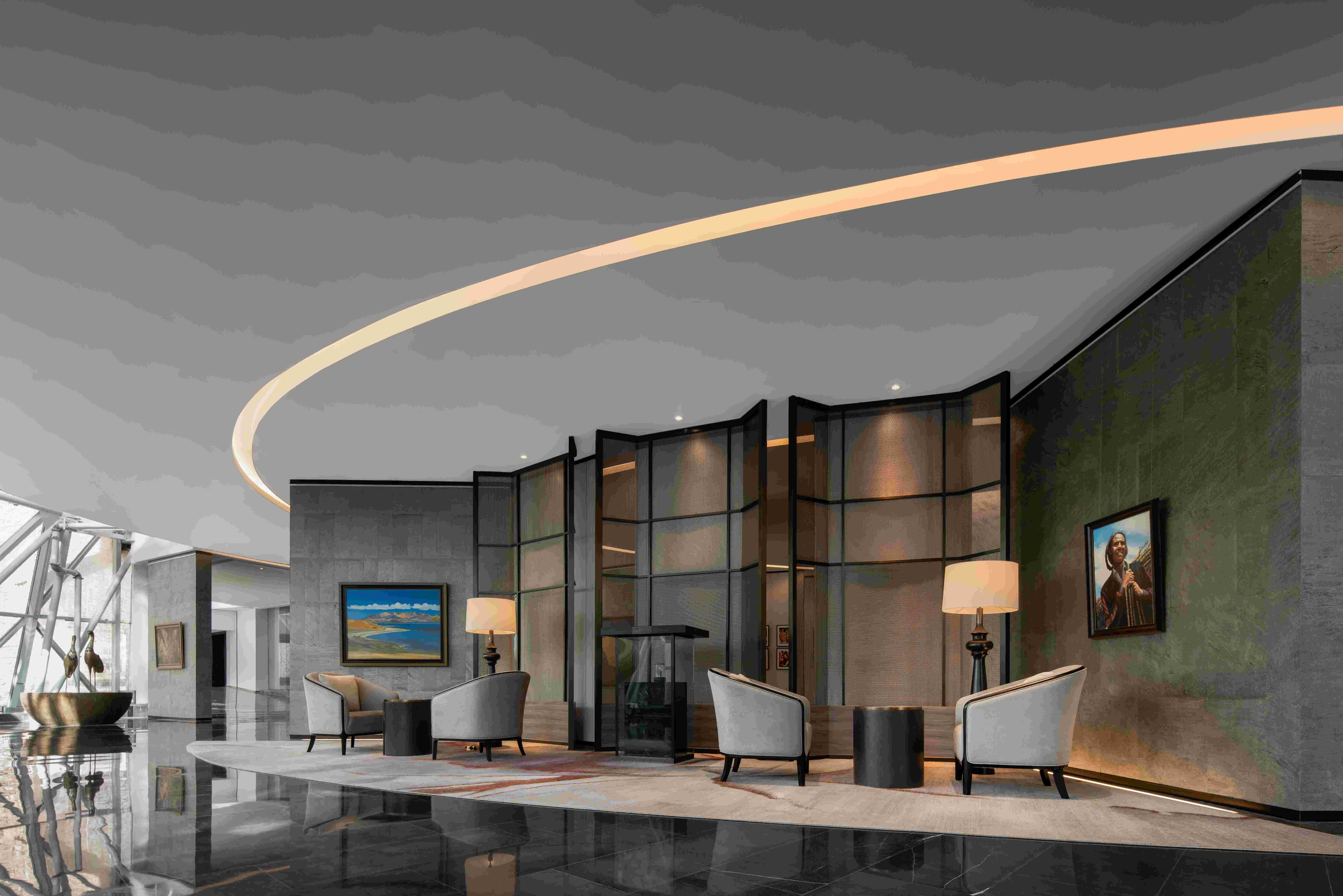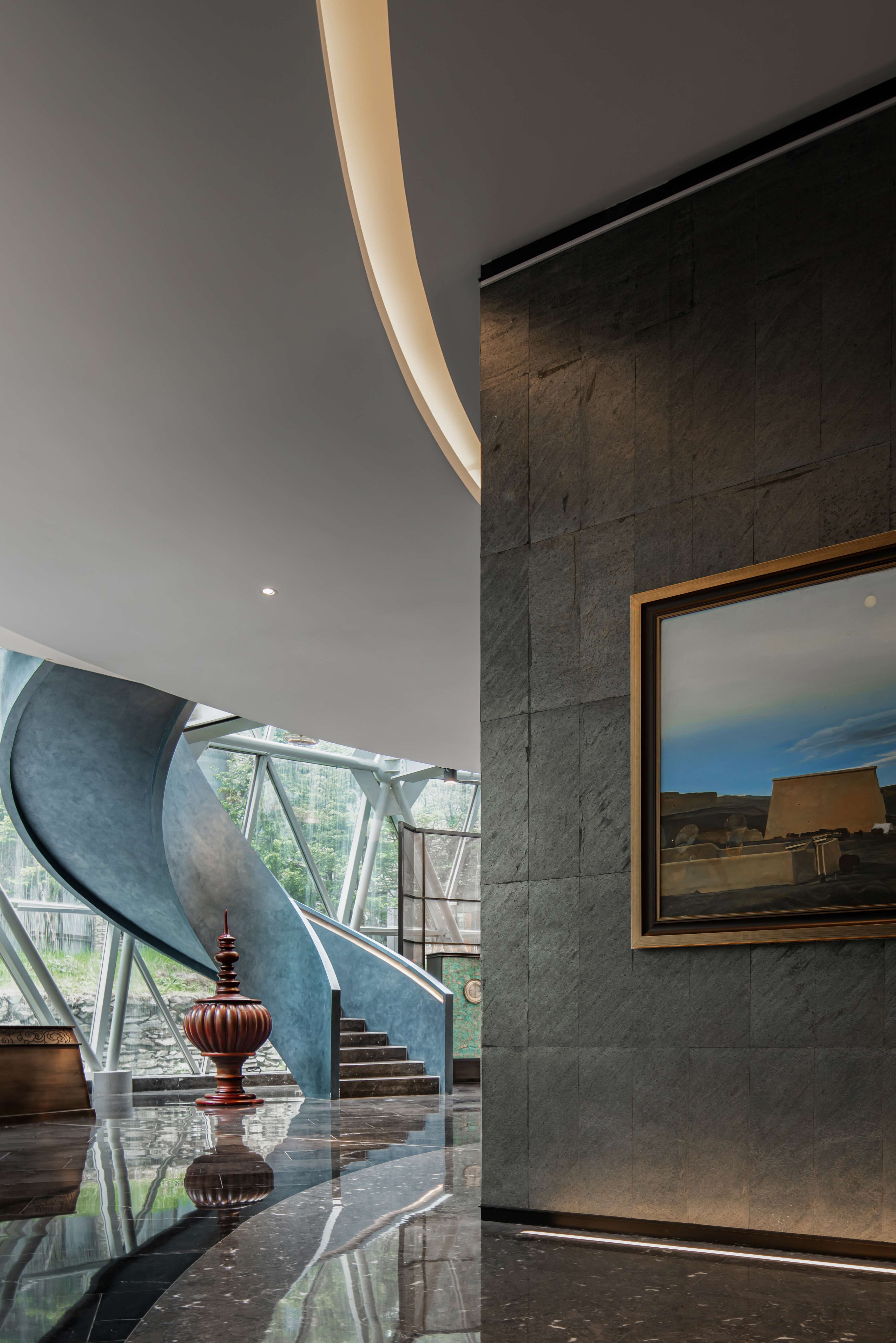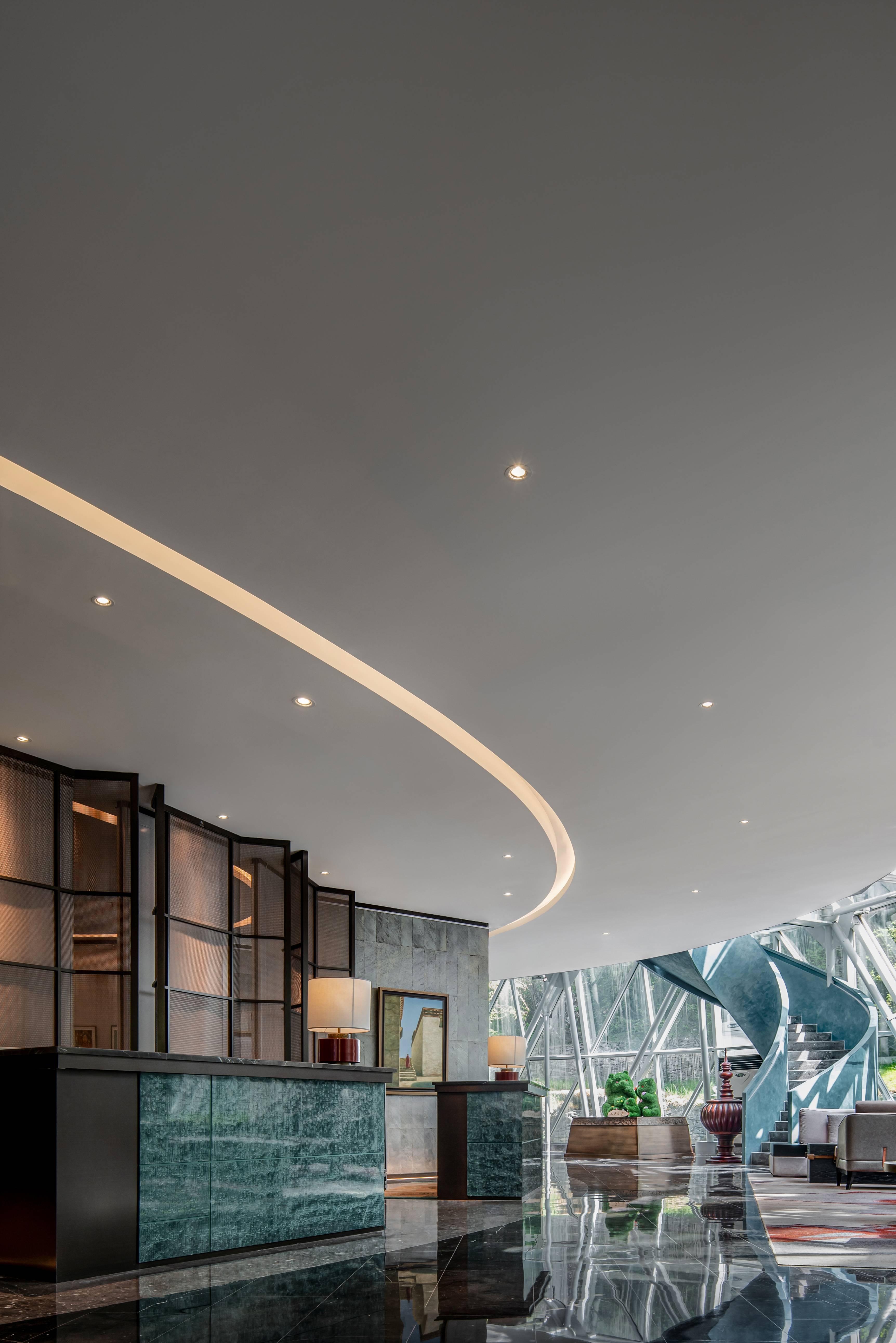 大堂休息區(qū)布置在景色最好的區(qū)域,這里被自然森林所環(huán)抱,不同的時節(jié)可感受不同的風(fēng)景。