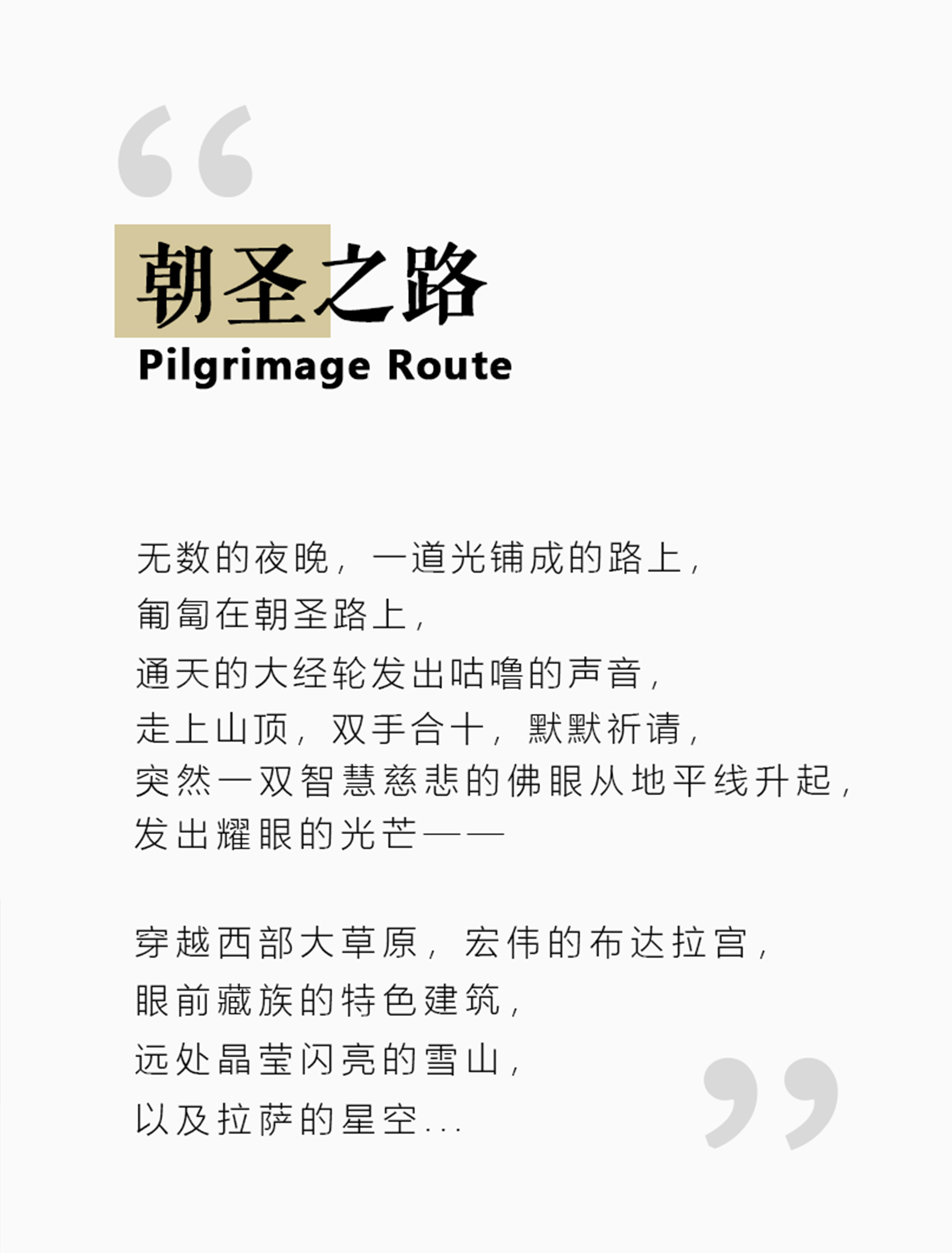GYD特別采用吸光材料來描繪藏人心中的圣山,白天隱隱可見的圣山,等到夜幕降臨,隨著光線的變暗圣山會慢慢的散發(fā)出道道金光,增加朝圣的儀式感。