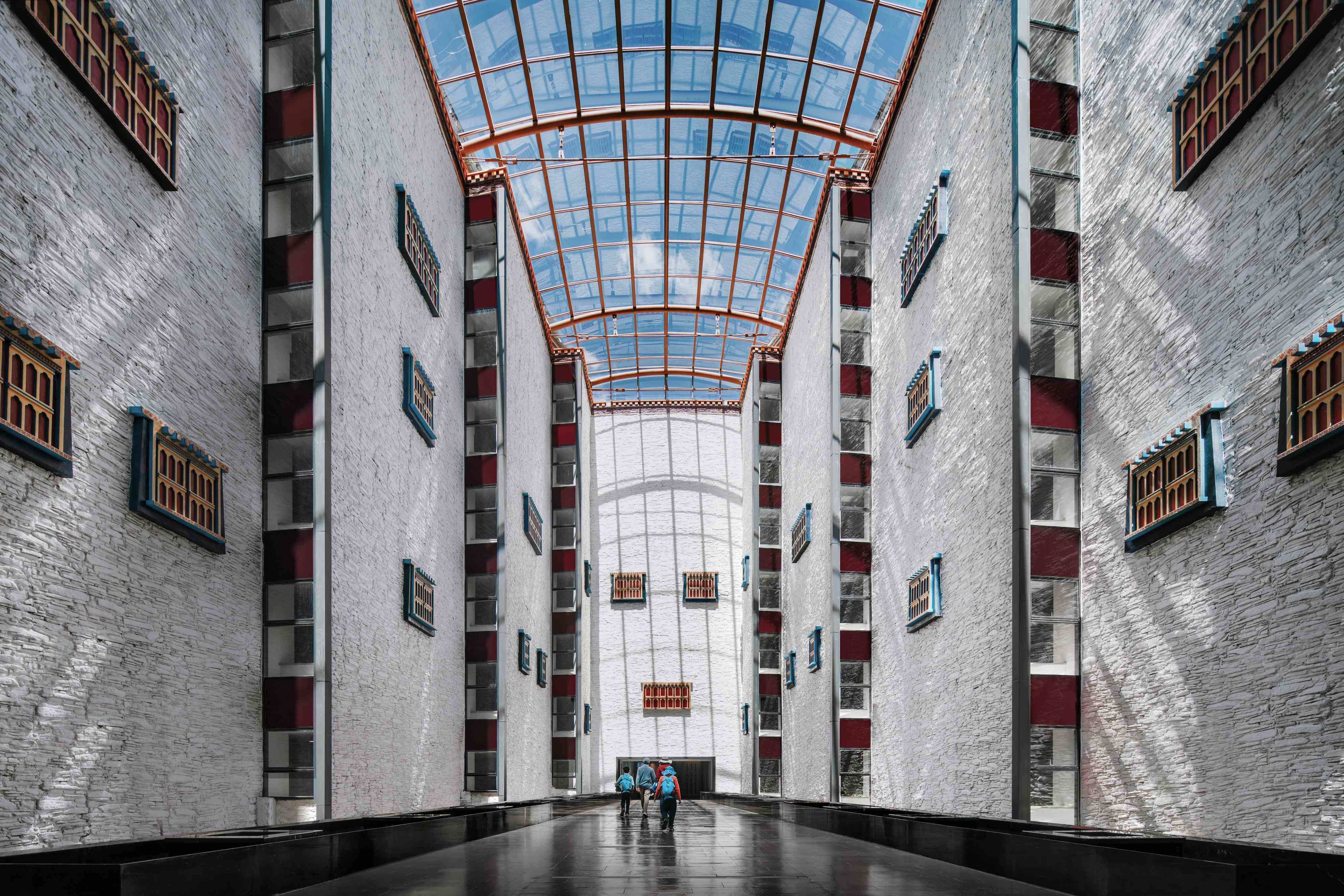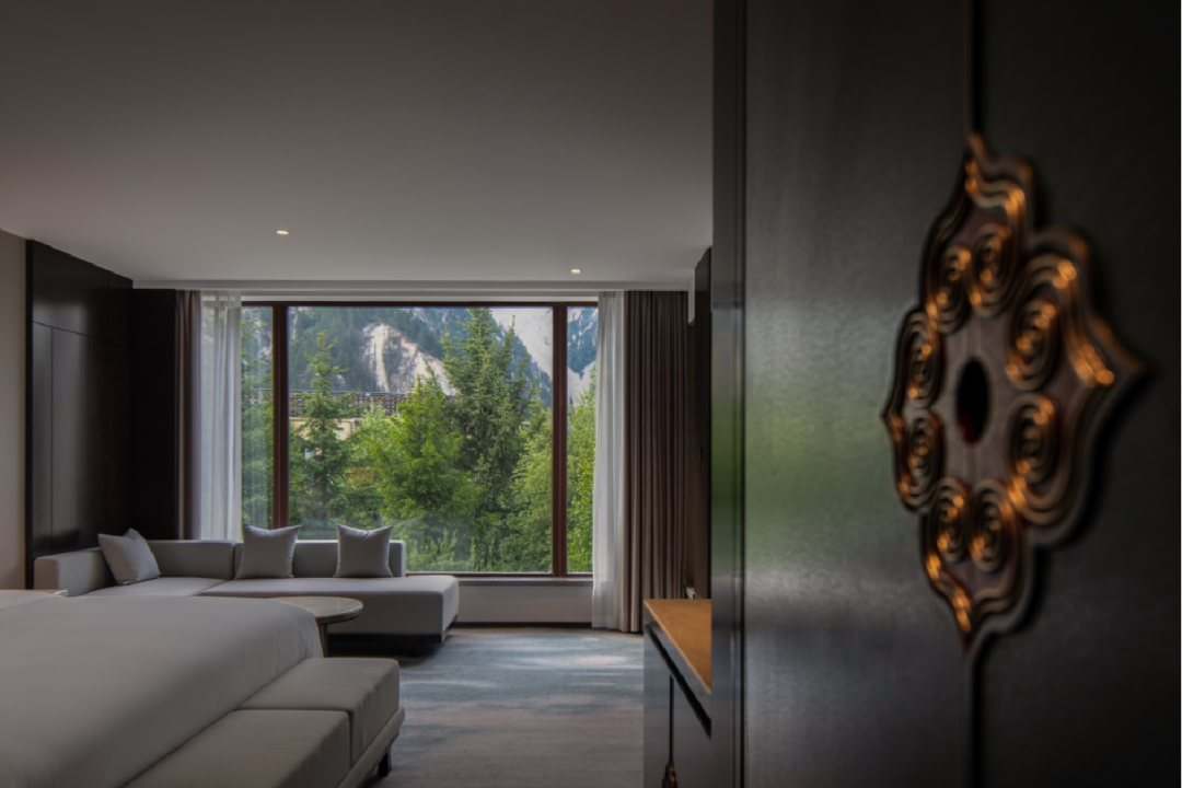 邊瑪墻、經(jīng)典藏式窗戶用現(xiàn)代手法解構(gòu)重組,打造朝圣路上的圣殿。