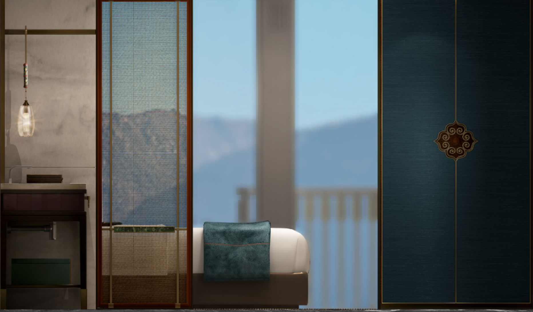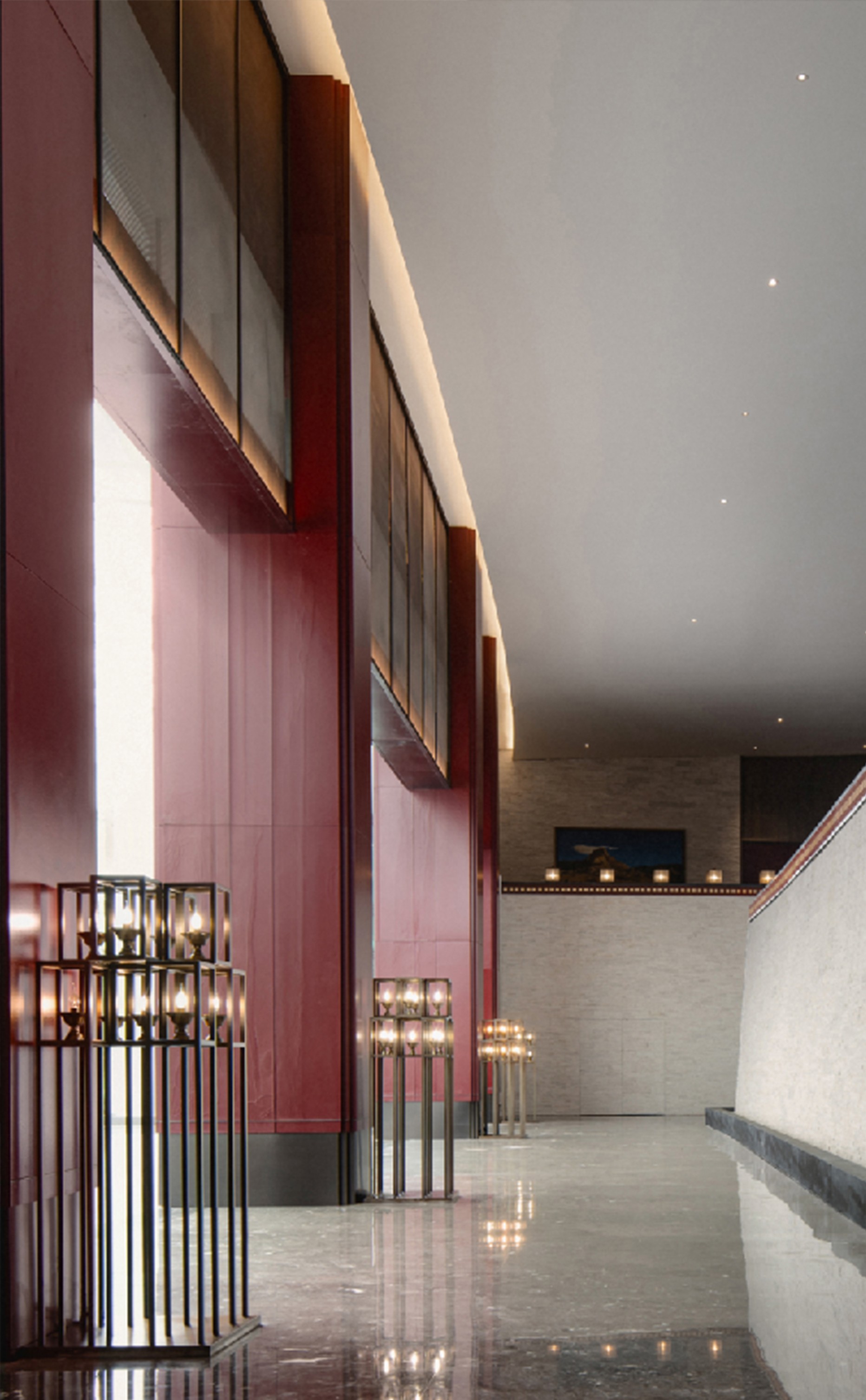 作為酒店改造項(xiàng)目,業(yè)主希望以極低的造價控制去保留酒店的歷史風(fēng)貌同時符合當(dāng)下的審美,GYD綜合各方面因素,保留藏族色彩印象,對地域元素進(jìn)行提煉并精細(xì)刻畫,立面材料上出于成本控制及震區(qū)的考慮,創(chuàng)新的采用了具有的天然質(zhì)感的薄石材板以及藏式邊瑪墻做法去刻畫一個具有藏式文化氣質(zhì)的氛圍。