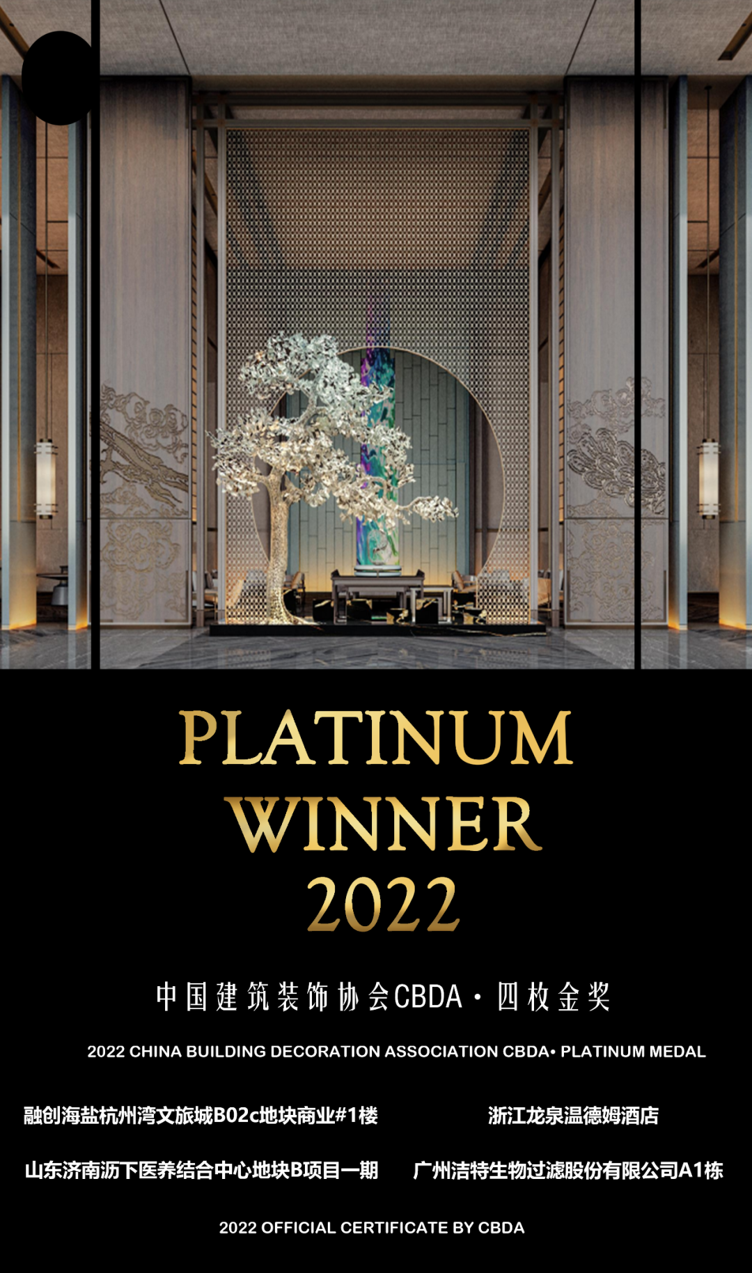 2022年10月,公司更名之際再迎來喜訊,江河設(shè)計(JHD)榮獲中國裝飾設(shè)計獎2021-2022年度四項金獎。本次江河設(shè)計憑借優(yōu)秀的設(shè)計理念、創(chuàng)新的設(shè)計實(shí)踐及卓越的設(shè)計成果榮登榜單。