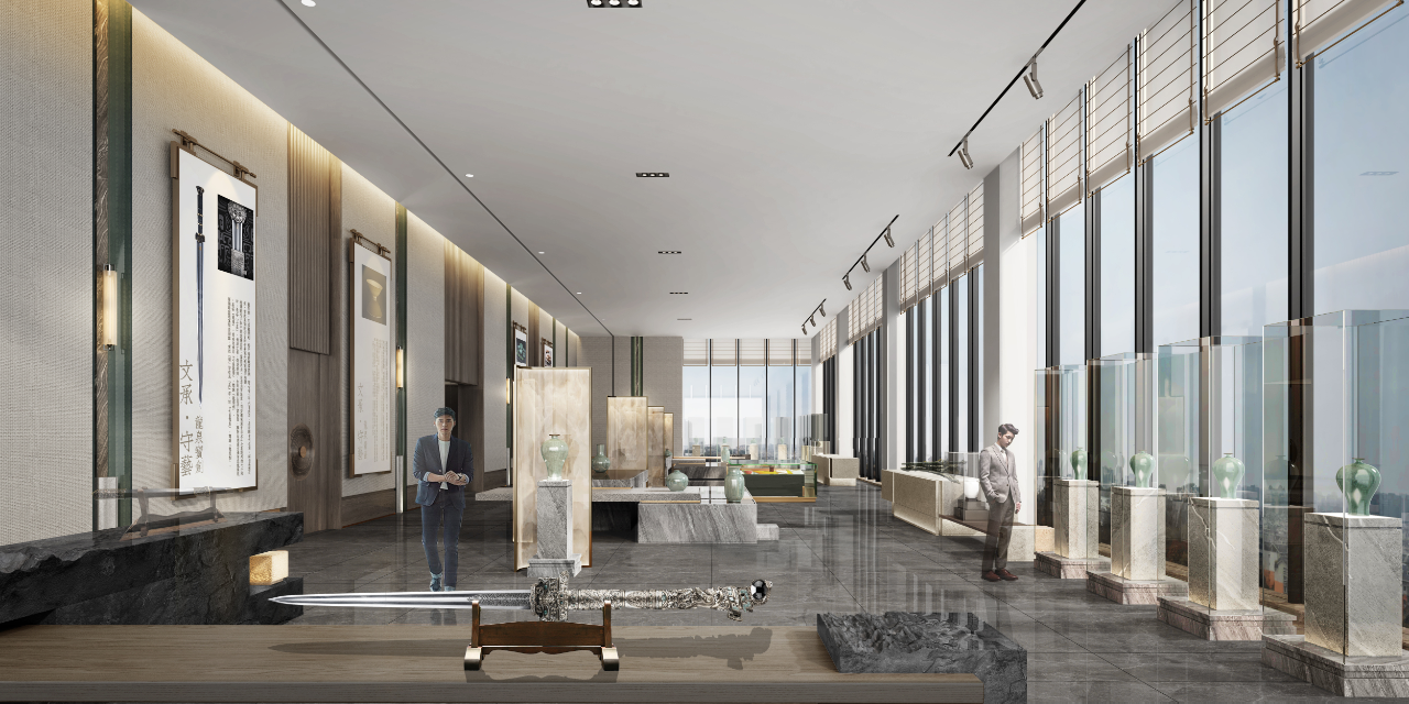 該項目位于浙江龍泉市,龍泉市以青瓷文化、寶劍文化、香菇文化聞名于世,是中國陶瓷文化歷史名城和浙江省歷史文化名城,也是著名的“海上絲綢之路”的起點(diǎn)。本次酒店設(shè)計汲取本地文化元素,將“青瓷”“寶劍”等元素融入室內(nèi)設(shè)計中。