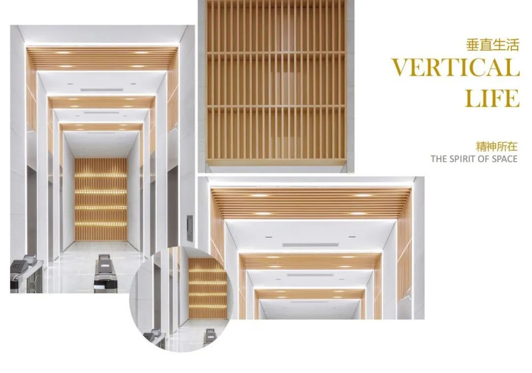 The vertical line of building draws our high attention. Horizontal framework has also been designed in vertical separations.