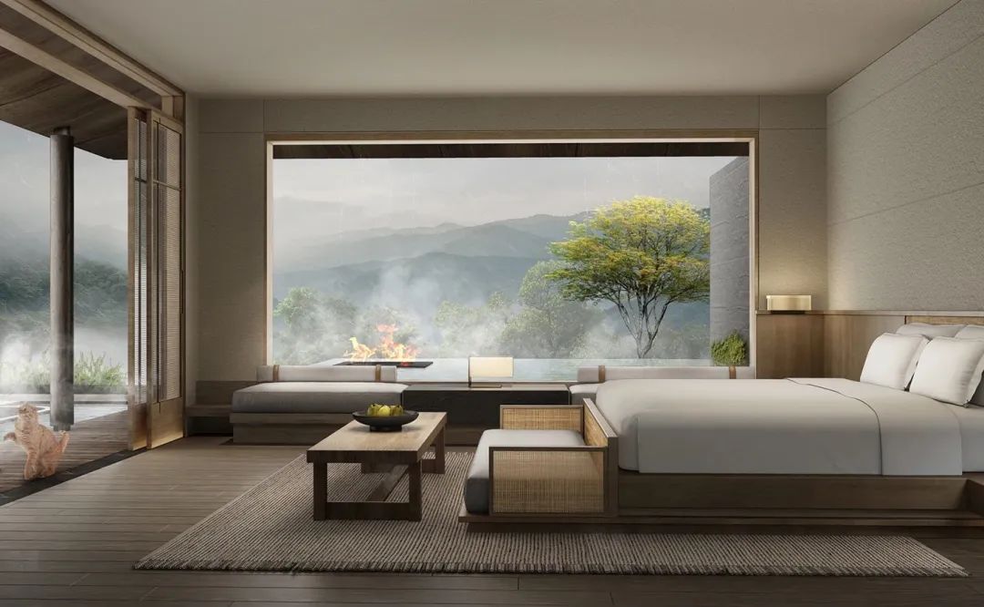 項(xiàng)目設(shè)計(jì)定位圍繞青城山——五糧液——森林——康養(yǎng)——度假酒店幾個(gè)核心關(guān)鍵詞展開。項(xiàng)目設(shè)計(jì)倡導(dǎo)“康、養(yǎng)、道、和”為生活方式,即將身體療愈,自然調(diào)養(yǎng),禪茶悟道,酒品人生為出發(fā)點(diǎn),于酒店處設(shè)計(jì)東方美學(xué),東方意境的隱士生活情趣。以簡(jiǎn)馭繁,融合在地性與自然共生,利用當(dāng)代設(shè)計(jì)手法展現(xiàn)古典人文情懷。