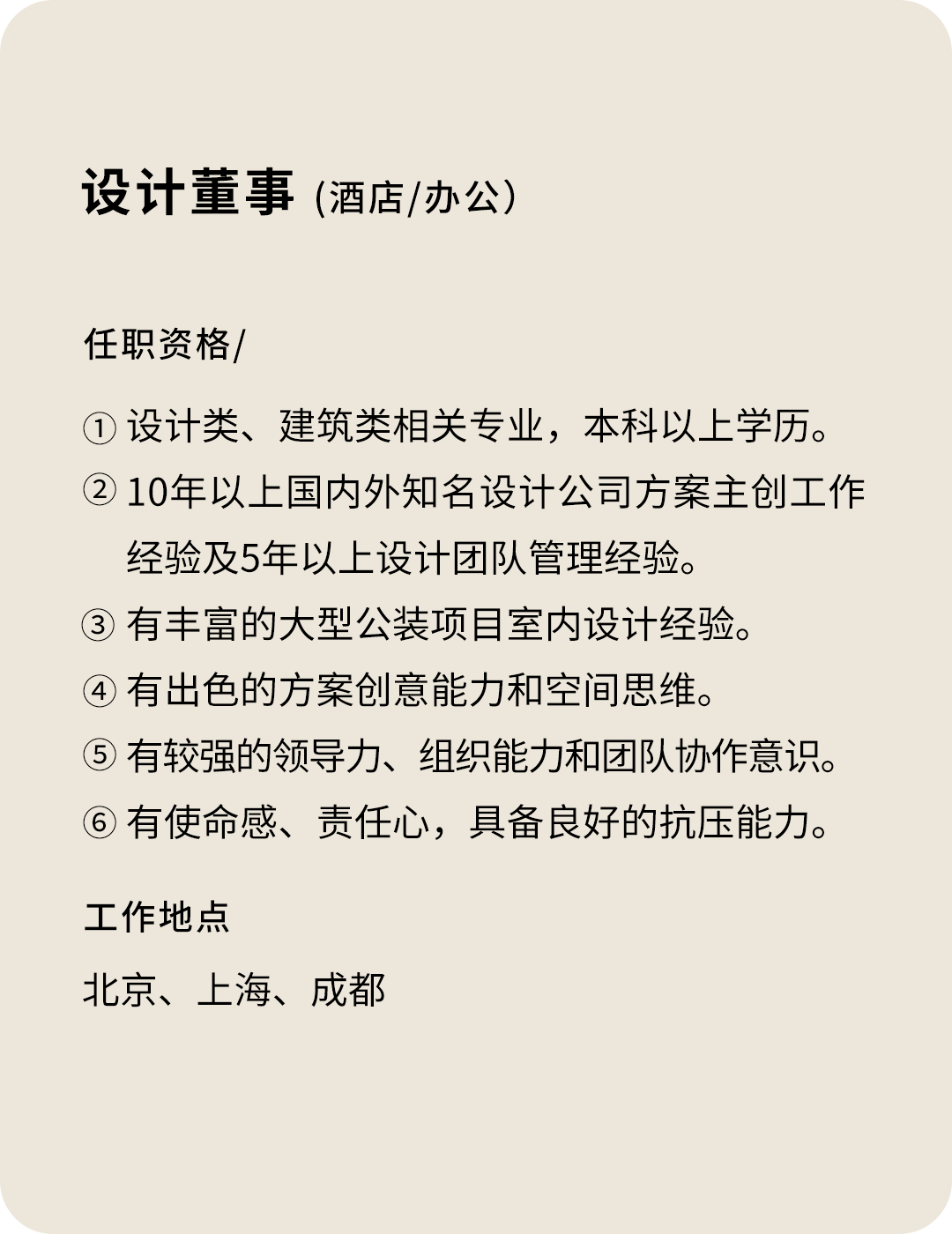 梁志天設(shè)計(jì)集團(tuán)成員之一。江河設(shè)計(jì)(簡(jiǎn)稱JHD)是大型、專業(yè)、知名設(shè)計(jì)機(jī)構(gòu)。創(chuàng)始于1995年。以引領(lǐng)、卓越為設(shè)計(jì)信仰,在公建、酒店、辦公、商業(yè)、醫(yī)養(yǎng)、地產(chǎn)六大領(lǐng)域接軌國際視野,刷新行業(yè)新高度。以強(qiáng)化內(nèi)控,堅(jiān)守品質(zhì),大師賦能的設(shè)計(jì)管理方式和以客戶為中心的服務(wù)理念,不斷推動(dòng)設(shè)計(jì)創(chuàng)新,設(shè)計(jì)賦能,持續(xù)為客戶創(chuàng)造更多價(jià)值。