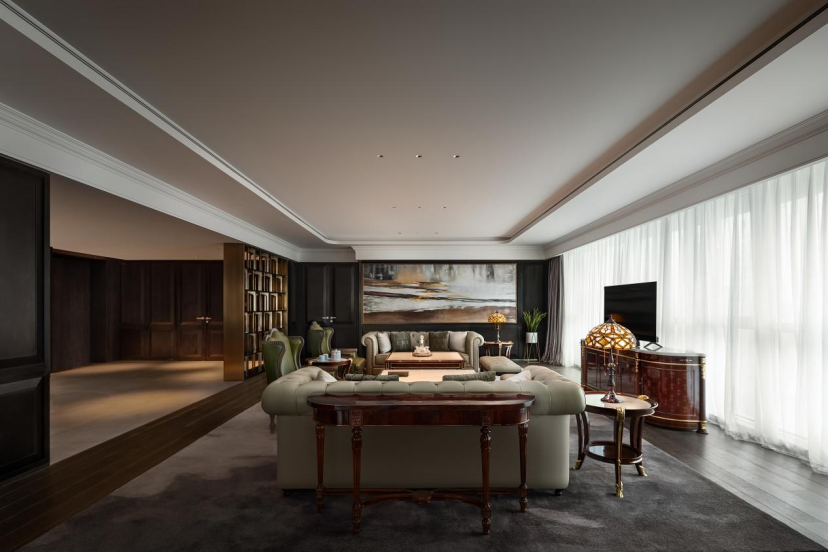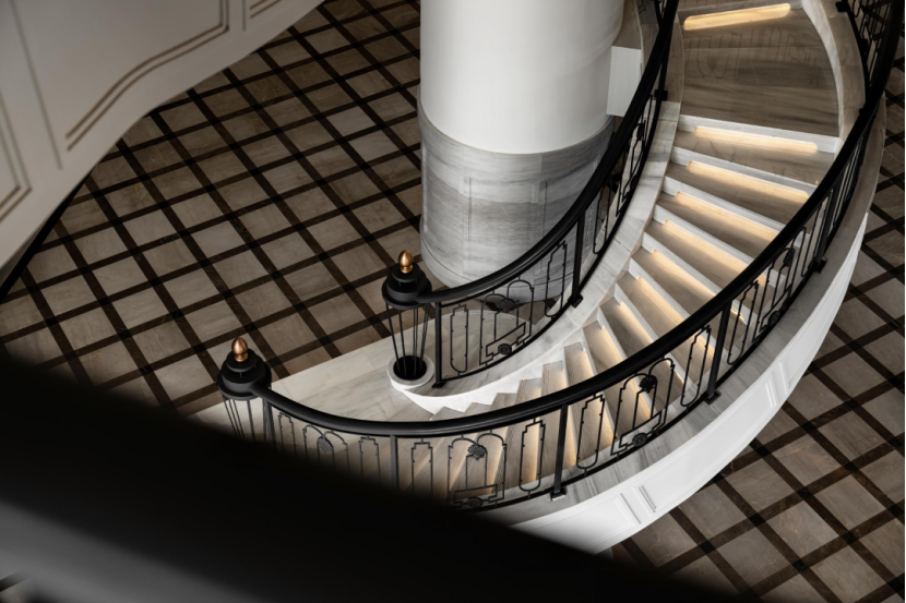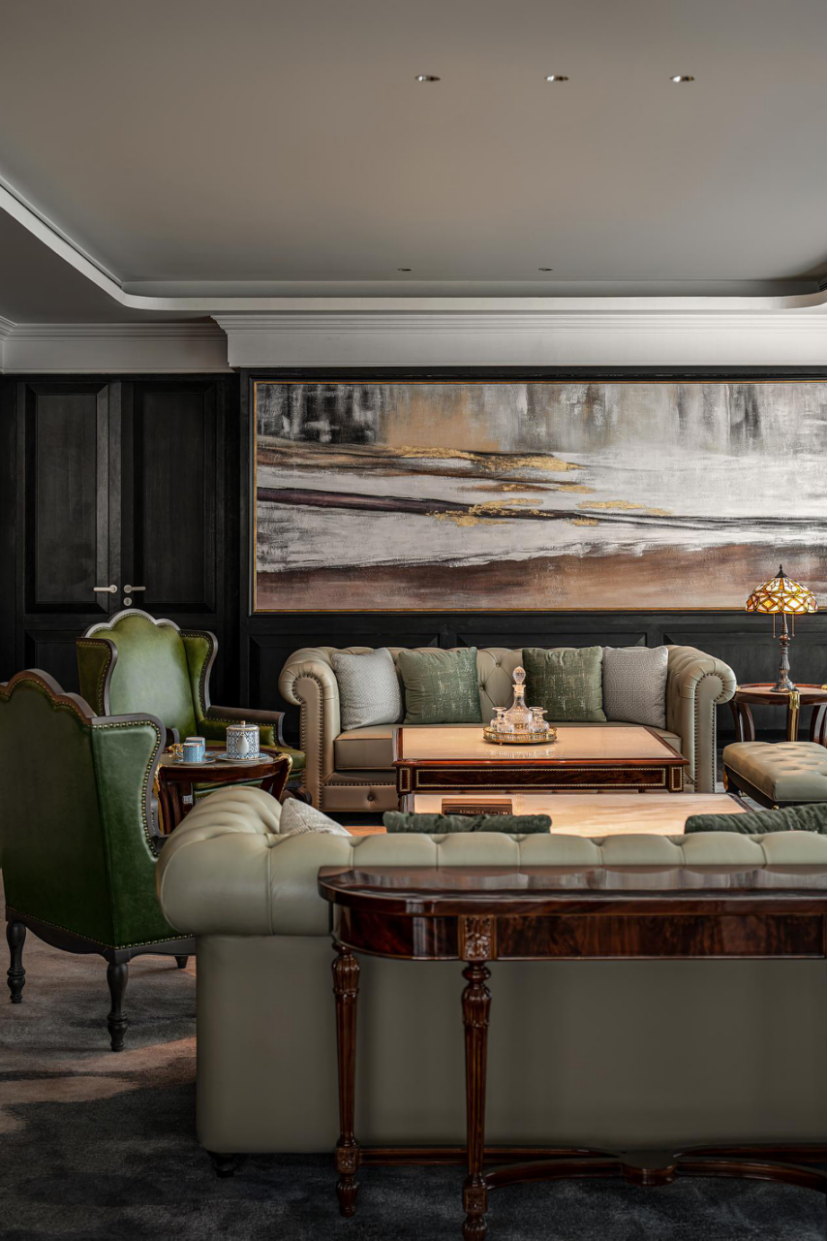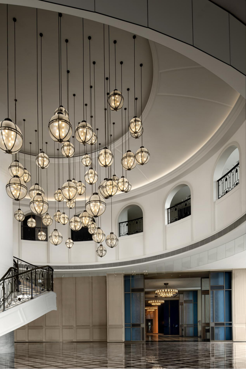 進(jìn)入藝術(shù)大堂,優(yōu)雅的選擇樓梯,精致的西式線條搭配棋盤式的石材鋪貼,優(yōu)美的穹頂下,復(fù)古而不失時(shí)尚的藝術(shù)吊燈,周圍環(huán)繞著是極具序列感的拱窗,每一個(gè)元素的運(yùn)用都透露著深深的時(shí)代的烙印。