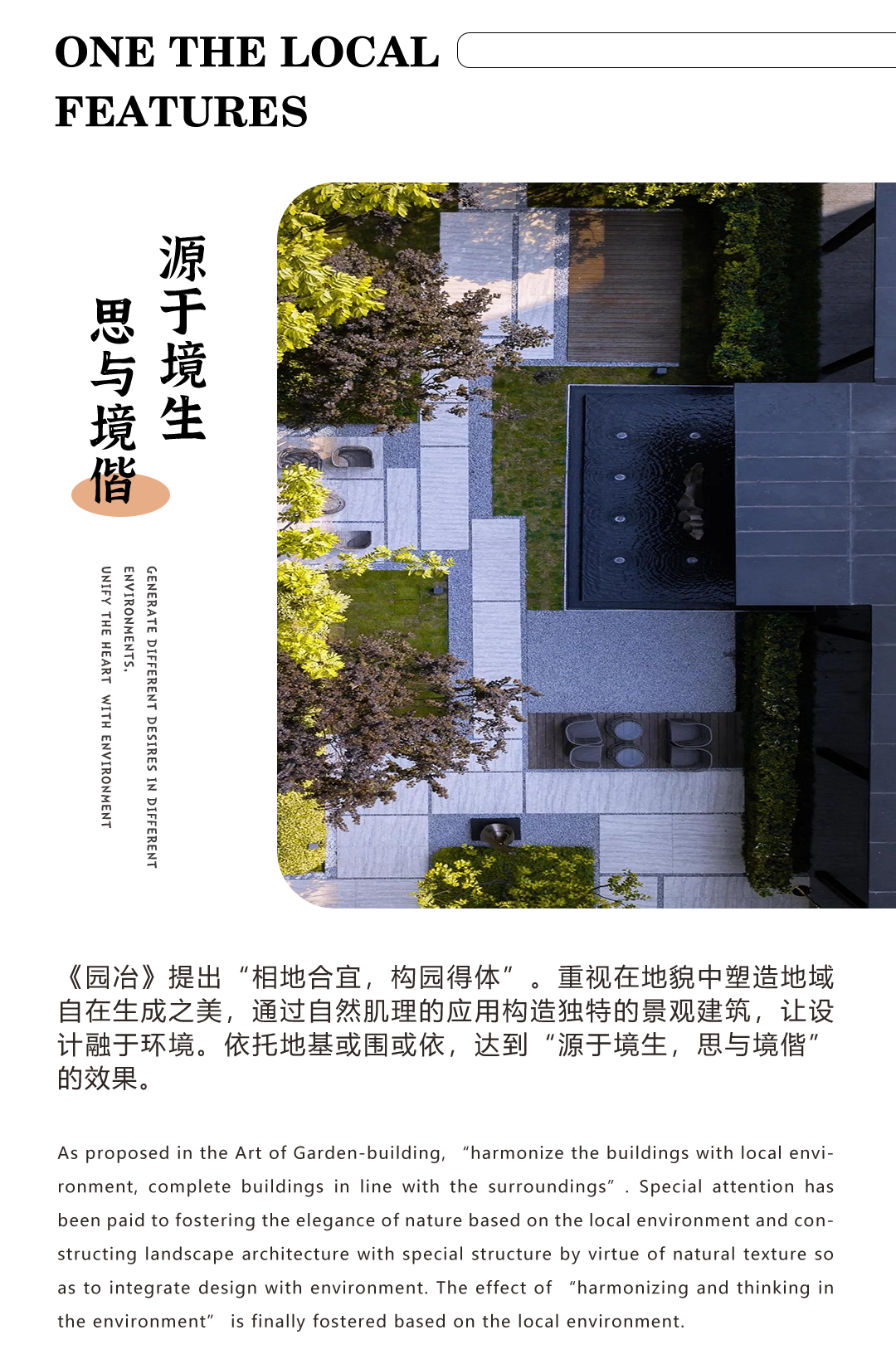 以身體之,以心感之,從當?shù)刈匀画h(huán)境、人文生活中汲取靈感元素,用其獨特設計語言演繹出空間的藝術感和生命力,為居住者營造出內涵豐富、擁有獨特風格的、最不可復制的空間體驗。