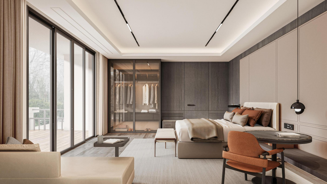 The gentle lines and mellow round corner divide a whole space and grant each part a flowing and stretchable style. Cultural features are also integrated in the natural and conservative main tone of earth, so as to create a modern, fashionable, warm and cozy space.