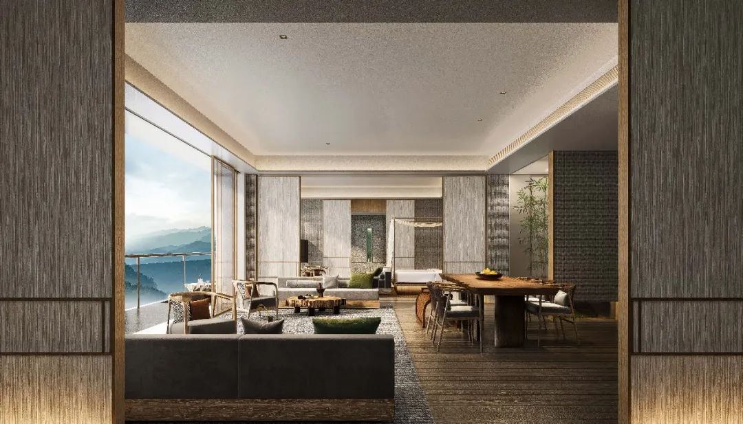 設(shè)計(jì)倡導(dǎo)“康、養(yǎng)、道、和”為生活方式,將身體療愈,自然調(diào)養(yǎng),禪茶悟道,酒品人生為出發(fā)點(diǎn),于酒店處設(shè)計(jì)東方美學(xué),東方意境的隱士生活情趣。以簡馭繁,融合在地性與自然共生,利用當(dāng)代設(shè)計(jì)手法展現(xiàn)古典人文情懷。