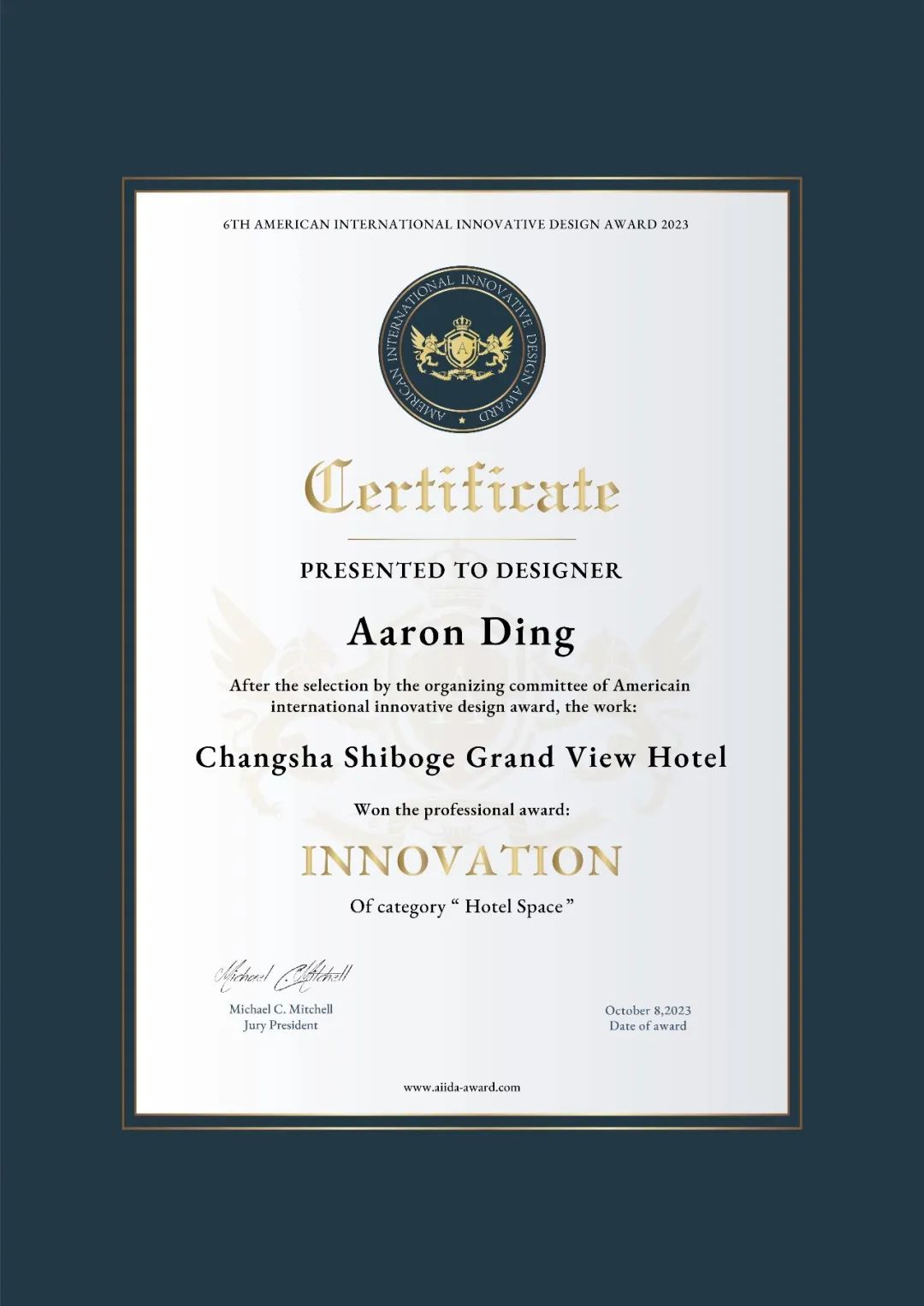 2023美國(guó)AIIDA國(guó)際設(shè)計(jì)大獎(jiǎng)于近日公布獲獎(jiǎng)結(jié)果,江河設(shè)計(jì)JHD憑借作品【長(zhǎng)沙施柏閣大觀與施柏閣酒店】,榮獲2023年美國(guó)AIIDA國(guó)際設(shè)計(jì)大獎(jiǎng)酒店空間類(lèi)國(guó)際創(chuàng)新設(shè)計(jì)獎(jiǎng)。