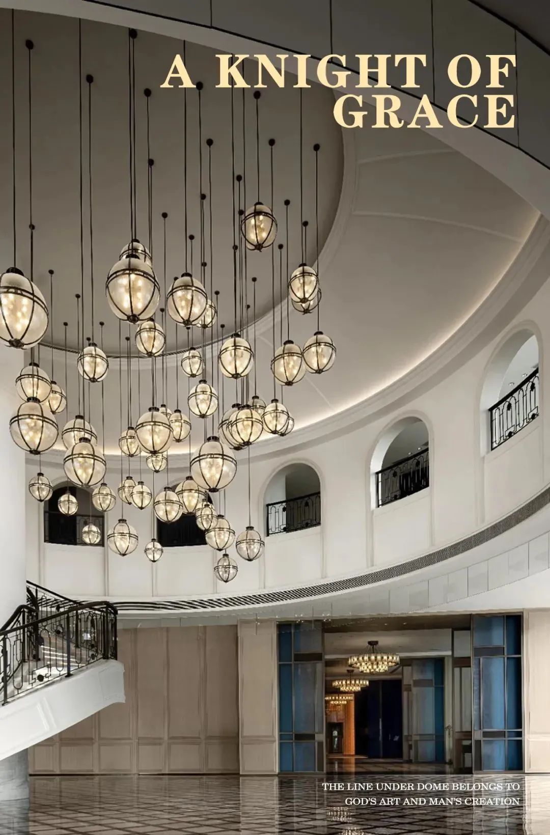 進(jìn)入藝術(shù)大堂,優(yōu)雅的旋轉(zhuǎn)樓梯,精致的西式線條搭配棋盤(pán)式的石材鋪貼,優(yōu)美的穹頂下,復(fù)古而不失時(shí)尚的藝術(shù)吊燈,周?chē)h(huán)繞著是極具序列感的拱窗,每一個(gè)元素的運(yùn)用都透露著深深的時(shí)代烙印。