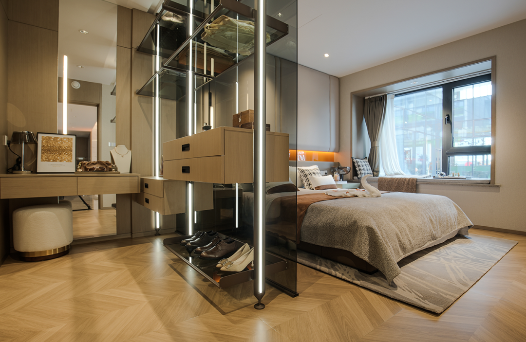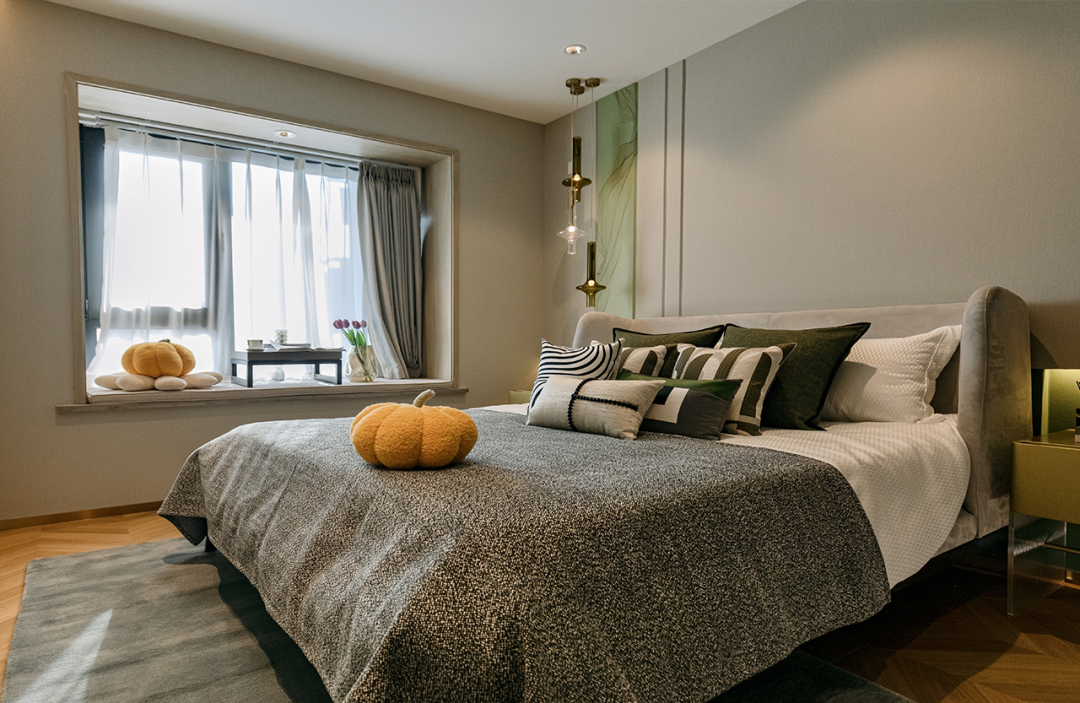 乳白色的紗簾,給陽光加了層溫柔的濾鏡,雙足漫步斑駁的綠意之上,仿佛間徜徉于熱情洋溢雨林之中,自然、通暢與愜意撲面而來。
