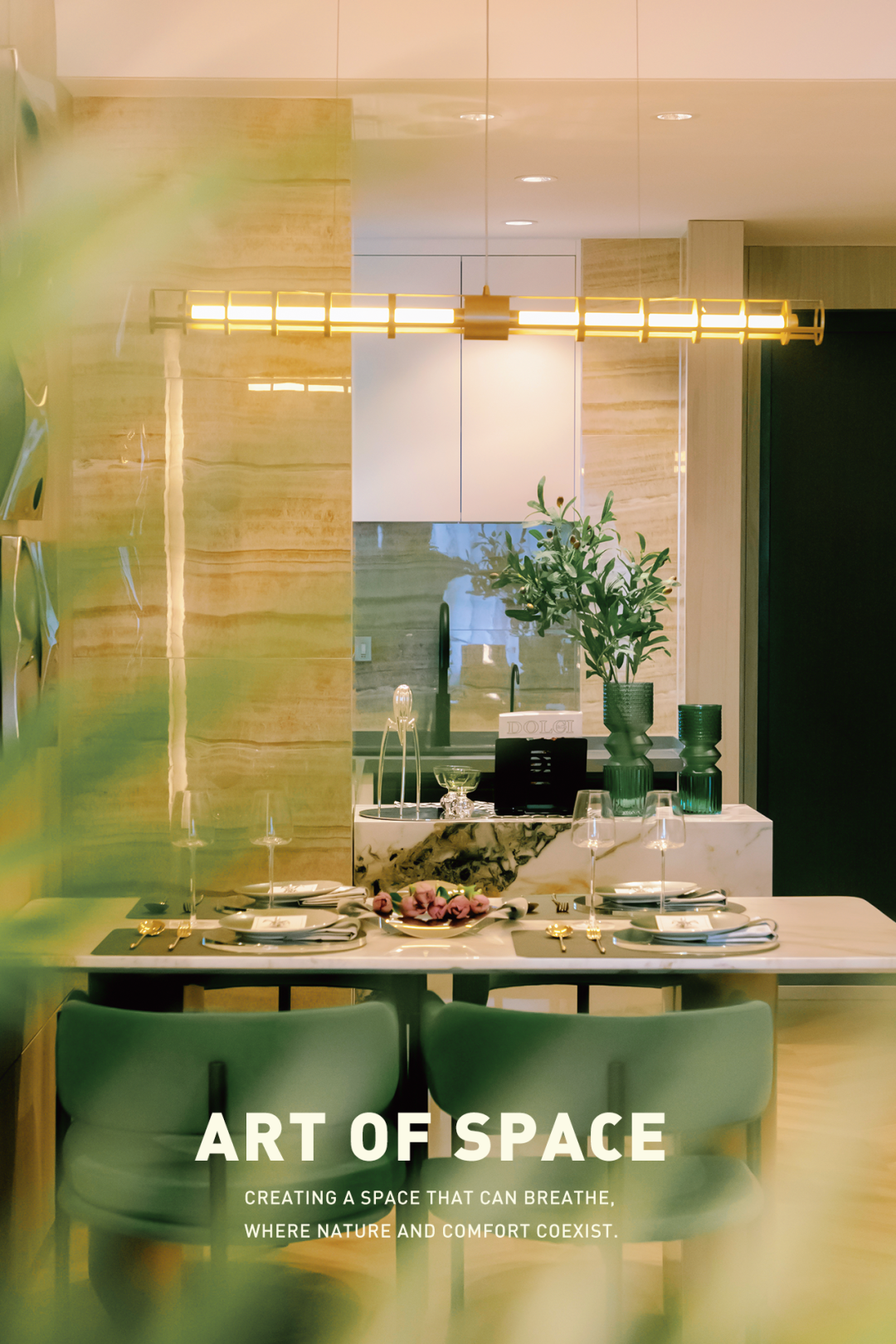 大自然總能給予人治愈身心的力量。流動(dòng)的空氣,無形的水,耀眼的陽光,這些是自然賦予了我們的能量,也是最干凈原始的生存條件。于都市生活中重回自然,解構(gòu)空氣,水源,陽光,用視覺呈現(xiàn)自然人文新居所。