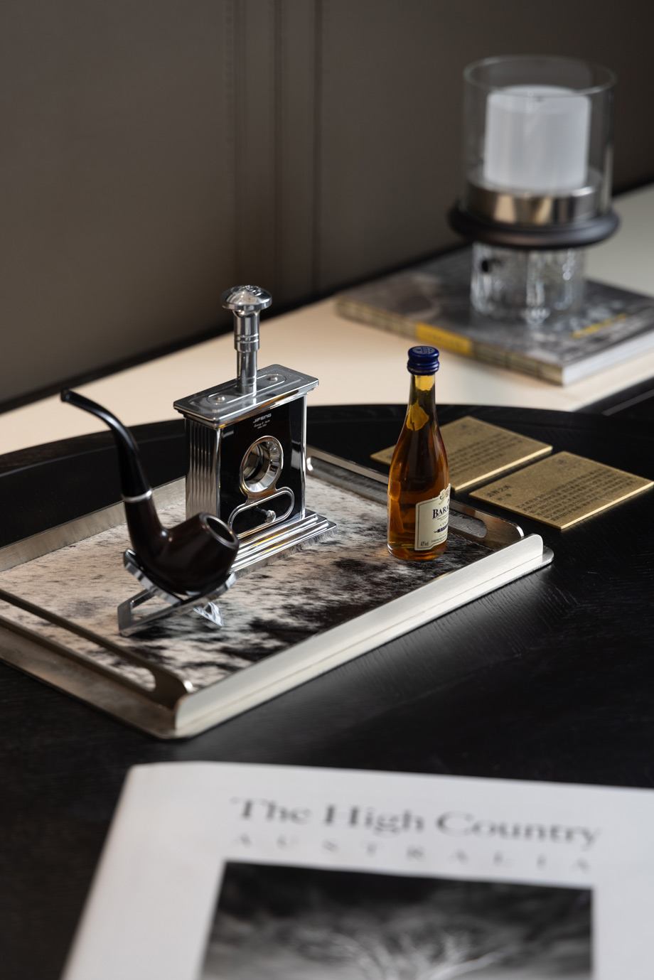 空間上通過細(xì)膩的材質(zhì)質(zhì)感和色彩上的對(duì)比,結(jié)合不同的施工工藝,金屬與皮革不同材質(zhì)的拼接與碰撞,暗藏宋代極簡美學(xué)的克制與精致,每一處細(xì)節(jié)元素在潛意識(shí)里貫穿始終,提升空間品質(zhì)感。