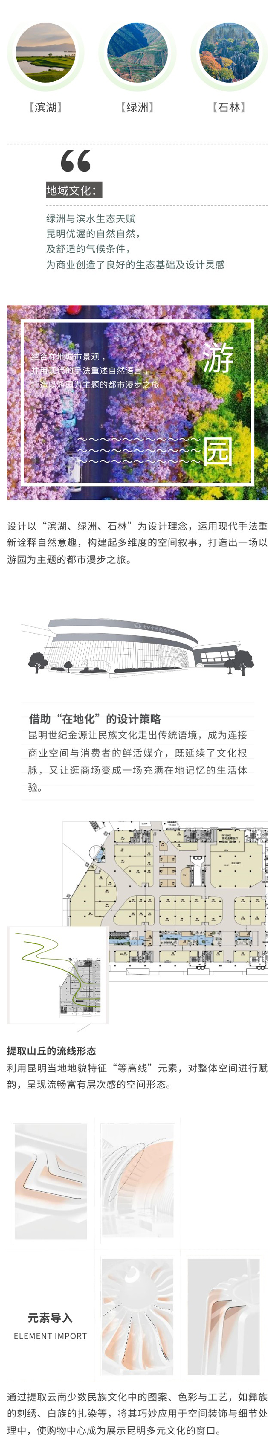 本次昆明世紀(jì)金源購物中心一層公區(qū)的精裝改造設(shè)計,融合了在地人文與自然生態(tài)元素,通過現(xiàn)代設(shè)計手法重述自然語言,打造出一個既現(xiàn)代又富有文化底蘊的購物環(huán)境。